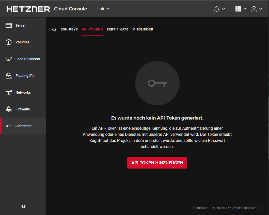 In der Cloud Console muss unter “Sicherheit” –> “API-Tokens” ein Lese/Schreib API Token angelegt werden.